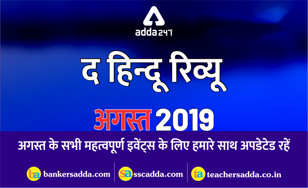 जैसा कि हम सभी जानते हैं कि हम आईबीपीएस आरआरबी पीओ / क्लर्क, आईबीपीएस पीओ, आरआरबी एनटीपीसी, एसएसई जेई और कई और अधिक से शुरू होने वाले एक नए परीक्षा सत्र की ओर बढ़ रहे हैं. हम आपकी तैयारी को गति प्रदान करने के लिए आप सभी के लिए लेकर आये हैं अगस्त माह का हिन्दू रिव्यु. हमने हालिया परीक्षाओं से देखा है कि अब यह चलन में है कि करंट अफेयर्स सेक्शन में पिछले 5 से 6 महीनों के प्रश्न पूछे जाते हैं.तो यह वह समय है जब आप सभी को इस विशेष खंड के लिए शुरुआत से ही तैयारी शुरू कर देनी चाहिए. हम आपको पहले ही जुलाई 2019 का हिन्दू रिव्यु प्रदान कर चुके हैं.