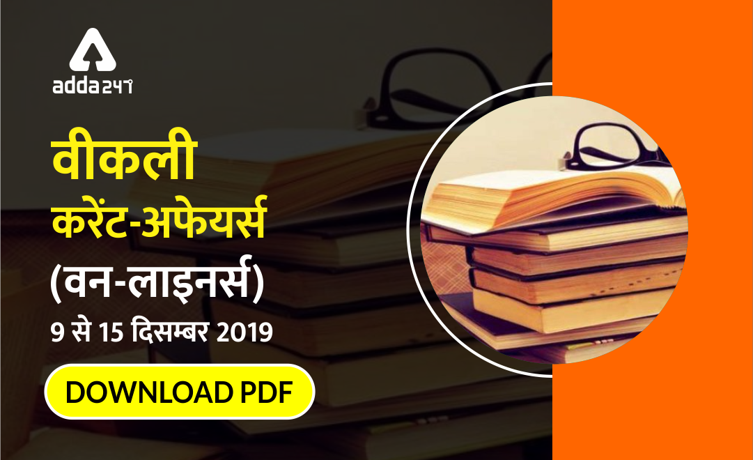 साप्ताहिक करेंट अफेयर वन-लाइनर्स : 9 से 15 दिसम्बर 2019 : Download PDF Now | Latest Hindi Banking jobs_3.1