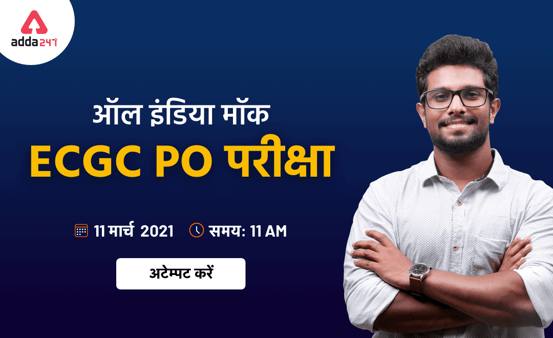 इसलिए, आज यानी 11th March 2021 को Adda247 लेकर आया है – All India Mock Test. यानी कि जो स्टूडेंट्स ECGC PO Exam 2021 में बैठने जा रहे हैं, वे इस मॉक को देने के बाद अपनी तैयारी के लेवल को चेक कर सकते हैं और अपनी performance को भी analyze कर सकते है.