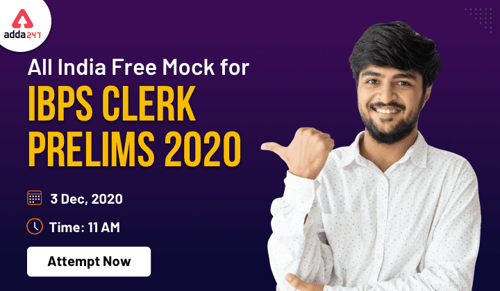 नीचे दिए गए लिंक से IBPS क्लर्क प्रीलिम्स 2020 ऑल इंडिया मॉक टेस्ट Attempt करें-
