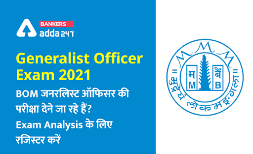 Bank of Maharashtra- Generalist Officer Exam 2021: बैंक ऑफ महाराष्ट्र (BOM) आगामी 26 जून 2021 को जनरलिस्ट ऑफिसर के लिए परीक्षा आयोजित आयोजित जा रहा है. यदि आप भी इस परीक्षा में शामिल होने वाले हैं, तो परीक्षा विश्लेषण, गुड एटेम्पट, कठिनाई स्तर के बारे में अपना अनुभव साझा करने के लिए adda247 के साथ रजिस्टर करें.