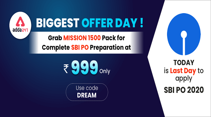 भारतीय स्टेट बैंक (State Bank of India) के लिए एसबीआई PO ऑनलाइन आवेदन की प्रक्रिया अब खत्म हो गयी है. सभी इच्छुक उम्मीदवार आज आवेदन की प्रक्रिया को पूरा कर लेंगे. इसलिए, अब से आपकी तैयारी शुरू करने का समय शुरु हो गया है. तो SBI PO बनने के लिए इस सफर में हम आपकी Preparation में आपका साथ देंगे. और इसीलिए Adda247 आपके लिए लाया है – Biggest offer for SBI PO aspirants यानी जो उम्मीदवार SBI PO 2020 की तैयारी कर रहे हैं, वे सभी केवल 999 रु. में इस ऑफर का लाभ उठा सकते हैं. ये अब तक का सबसे किफायती OFFER है. ये है – complete preparation solution for SBI PO.
