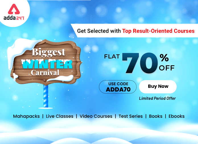 अब सर्दी का समय शुरू हो गया है!!!! इस समय exams का भी सीज़न चल रहा है, इसलिए इन सर्दियों में आपकी cozy studies के लिए हम लेकर आये हैं- बहुत भारी छूट पर ADDA247 के सभी प्रोडक्ट्स! आप सभी प्रोडक्ट्स पर पायें 70% की छूट पा सकते हैं. इस COVID-19 जैसे समय में आप घर रहकर पढ़ाई कर सकते हैं , फिर चाहे आप SBI PO, RRB NTPC, DDA रिक्रूटमेंट के लिए तैयारी कर रहे होंगे !