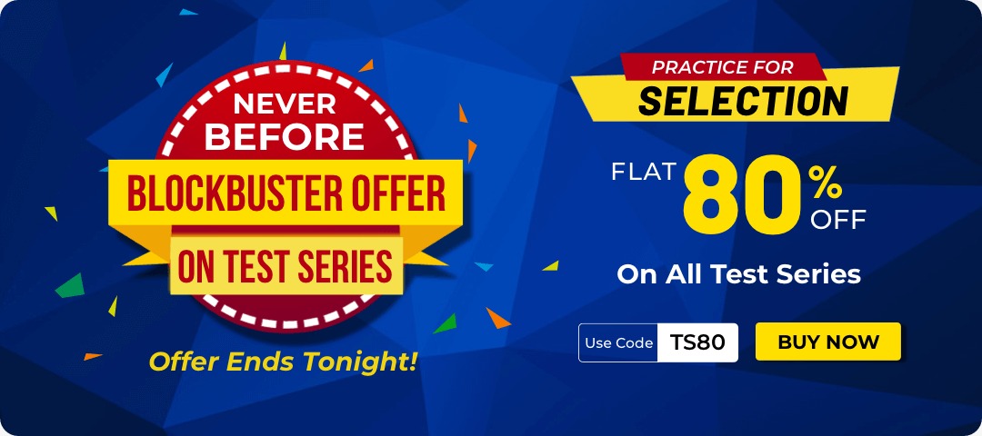 किसी भी सरकारी नौकरी की परीक्षा को क्रैक करने के लिए सबसे जरुरी हैं सही प्रैक्टिस के साथ-साथ बेस्ट अध्ययन सामग्री (study material) की और जैसा आप जानते है कि Adda247 जाना जाता हैं अपने बेस्ट क्वालिटी कंटेंट और उच्च स्तरीय मॉक टेस्ट (high-level mock tests) के लिए तो अब देरी किस बात अभी लाभ उठाए हमारे ब्लॉकबस्टर ऑफर यानि 80% डिस्काउंट(FLAT 80% OFF on all test series) का, जो आपको मिलेगा हमारी सभी टेस्ट सीरीज पर. यह ऑफर केवल आज रत तक ही सीमित है. तो, देर किस बात की ? जल्दी कीजिये और इस मौके का लाभ उठायें ??