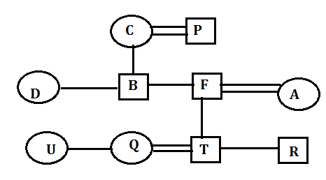 उदाहरण-1: तीन पीढ़ियों के एक परिवार में दस सदस्य P, U, T, R, Q, A, B, D, F, C हैं। उनमें से केवल तीन विवाहित युगल है। C के पति के केवल 2 ग्रैंडचिल्ड्रेन है। A के फादर–इन–लॉ के केवल 2 पुत्र और एक पुत्री है। T और R, F की पत्नी की संतान है। Q और U बहनें हैं। F, C का पुत्र है। R, Q का ब्रदर–इन–लॉ है। P, B का पिता है, जो T का अंकल है। Q, A का डॉटर–इन–लॉ है।