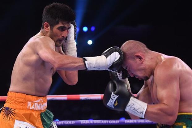 (ii)प्रो बॉक्सिंग के मुम्बई में ‘बैटलग्राउंड एशिया’ नामक मुकाबले में, विजेंदर ने अपने चीनी प्रतिद्वंद्वी को एक सर्वसम्मत जीत का रिकॉर्ड रखा और अपने अपरिहार्य लकीर को जारी रखा, यह बीजिंग ओलंपिक कांस्य पदक विजेता के अपने पेशेवर कैरियर डेलवेट शीर्षक में नौवीं लगातार जीत थी.