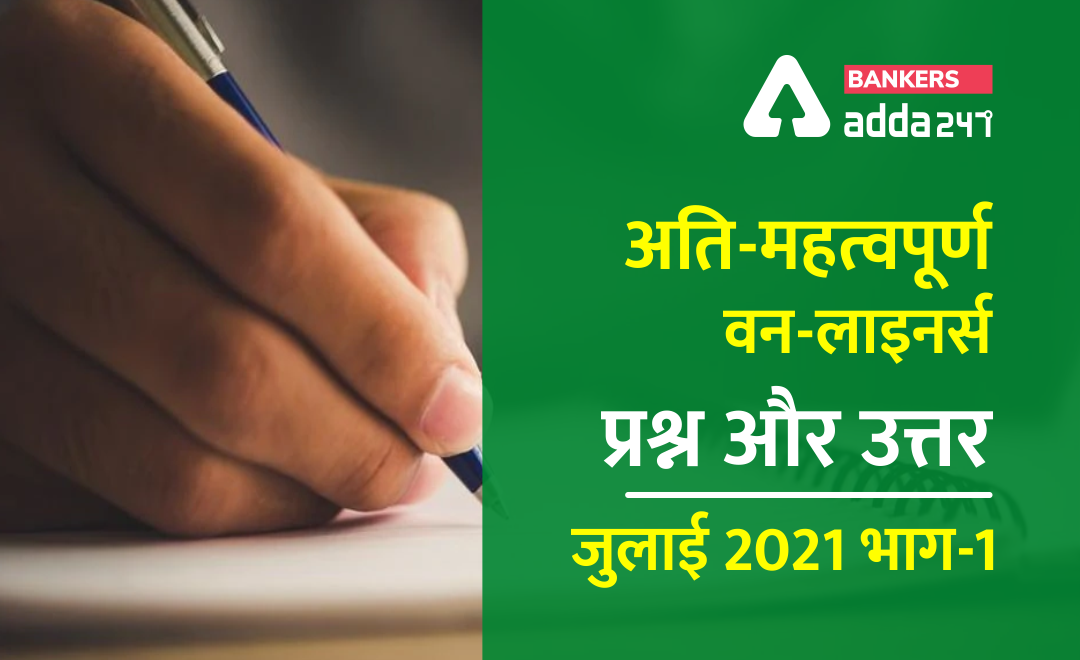 करेंट अफेयर्स जुलाई 2021 के वन-लाइनर्स प्रश्न और उत्तर (भाग-1) : Download PDF in Hindi