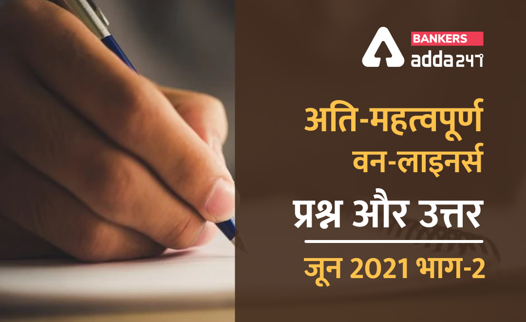 करेंट अफेयर्स जून 2021 के वन-लाइनर्स प्रश्न और उत्तर (भाग-2) : Download PDF in Hindi