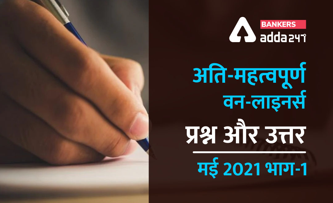 करेंट अफेयर्स मई 2021 के वन-लाइनर्स प्रश्न और उत्तर (भाग-1) : Download PDF in Hindi
