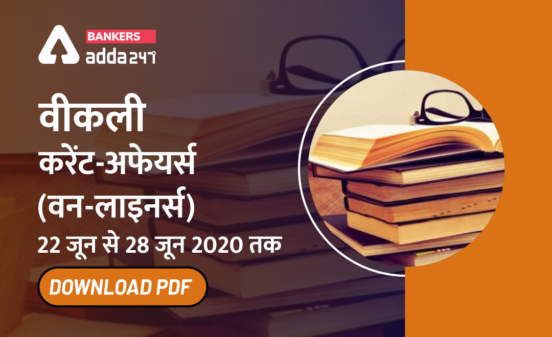 वीकली करेंट अफेयर्स वन-लाइनर्स 22 जून से 28 जून 2020 तक | Download PDF