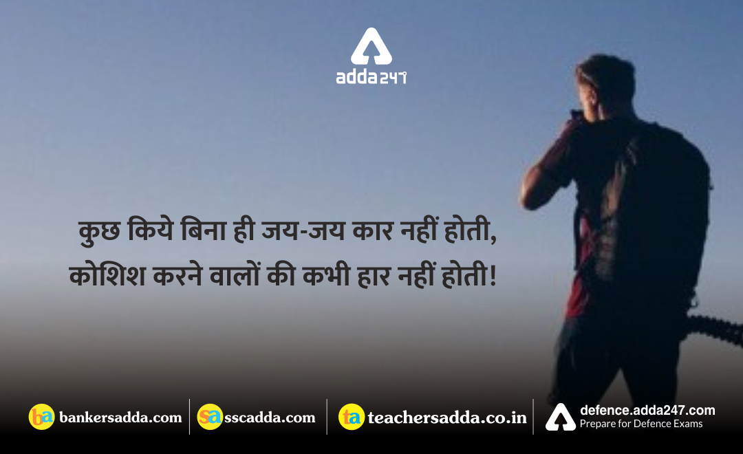 हम सभी किसी न किसी लक्ष्य को पाने का प्रयास करते हैं, हम उसे पाना चाहते हैं. हमें एक के बाद एक ऐसी अनेक असफलताएं हाथ लगती हैं, जिसके बाद हम बीच में से मैदान छोड़ के जाने के बारे में भी सोचने लगते हैं.  लेकिन हमें सफलता तभी मिलती है जब हम प्रयास करने से नहीं हारते , और उन प्रयासों को जारी रखते हैं. यही सच है कि कोशिश करना जरूरी है, क्योंकि कोशिश करने वालों की कभी हार नहीं होती…