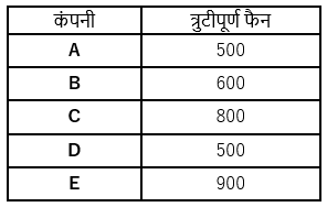 नोट – किसी कंपनी द्वारा निर्मित कुल फैन = उस कंपनी द्वारा निर्मित कुल (त्रुटीपूर्ण + त्रुटीरहित) फैन