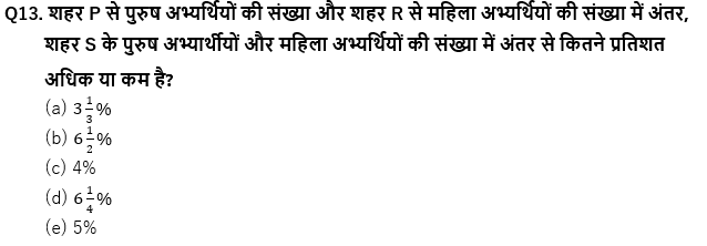 Q15. शहर P और Q से पुरुष अभ्यर्थियों की कुल संख्या तथा शहर R और S से महिला अभ्यर्थियों की संख्या का योग ज्ञात कीजिए।