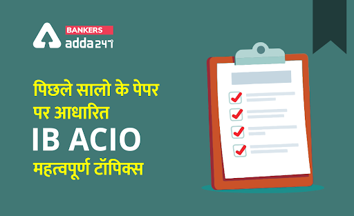 हम सभी जानते हैं कि Intelligence Bureau की IB ACIO Exam 2021 परीक्षा के Tier-IIके लिए अब बस कुछ ही दिन बचे हैं, क्योंकि गृह मंत्रालय ने exam की dates release कर दी हैं जो कि 25 जुलाई 2021 को आयोजित की जानी है. IB एक ऐसी संस्था है जो देश के आंतरिक सुरक्षा मामलों को संभालती है। ये जॉब एक बहुत बड़ी opportunity है देश के लिए कुछ कर दिखाने की. अब परीक्षा में जब कुछ दिन ही बचे हैं, हमें उम्मीद हैं कि आपकी तैयारी अच्छी चल रही होगी. आपकी तैयारी में मदद करने के लिए आज ADDa247 की टीम आपके लिए लेकर आई है important topics based on previous year, जिससे उम्मीदवारों को परीक्षा के पैटर्न और प्रश्न के पैटर्न का आईडिया मिलेगा.
