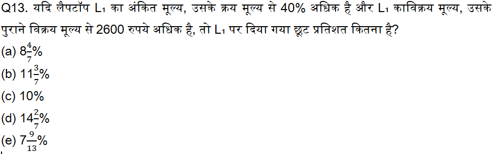 Q14. उस बाइक को बेचने पर अरुण को प्राप्त कुल राशि और दोनों लैपटॉप को एकसाथ बेचने पर वीर को प्राप्त कुल राशि मिलाकर, तीनों वस्तुओं के मिलाकर कुल क्रय मूल्य के 108% से कितनी कम या अधिक है?