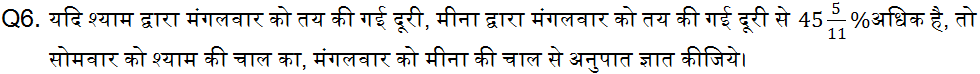 Q10. यदि श्याम ने सोमवार को 800 किमी दूरी तय की और टिंकू ने सोमवार को 360 किमी दूरी तय की, तो सोमवार को श्याम की चाल का सोमवार को सोमवार को टिंकू की चाल से अनुपात ज्ञात कीजिये।