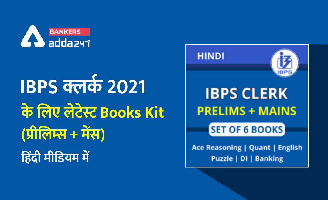 बैंकिंग कार्मिक चयन संस्थान (IBPS) ने आईबीपीएस क्लर्क 2021 (IBPS Clerk 2021) के लिए 11 जुलाई 2021को 5830 उम्मीदवारों की भर्ती के लिए अधिसूचना (IBPS Clerk Notification 2021) जारी की है। आईबीपीएस इस पद के लिए क्रमशः 28, 29 अगस्त और 4, 5 सितंबर, 2021 को प्रारंभिक और मुख्य परीक्षा आयोजित करेगा। Adda247 ने IBPS क्लर्क परीक्षा 2021 की तैयारी कर रहे सभी उम्मीदवारों के लिए हिंदी में latest IBPS Clerk 2021 Books Kit for (Prelims + Mains) लॉन्च की है। यह पुस्तक 13,000+ प्रश्नों के नवीनतम पैटर्न पर आधारित है जो आपकी तैयारी को बेहतर बनाएगी।