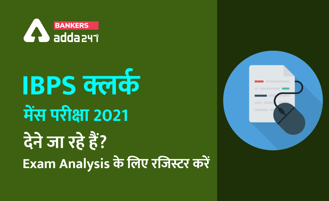 इंस्टिट्यूट ऑफ़ बैंकिंग पर्सनेल सेलेक्शन (IBPS) आगामी 28 फरवरी 2021 को IBPS क्लर्क मेन्स परीक्षा 2021 (IBPS Clerk Mains 2021) का आयोजन करने जा रहा है. हम उन सभी उम्मीदवारों से Exam Analysis के लिए हमारे साथ रजिस्टर करने का अनुरोध करते हैं, जो 28 फरवरी 2021 को होने वाली IBPS क्लर्क मेन्स परीक्षा 2021 (IBPS Clerk Mains 2021) देने वाले हैं.