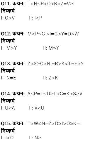 Directions (11-15): इन प्रश्नों में, कथनों में विभिन्न तत्वों के बीच संबंध दिखाया गया है। कथनों के बाद निष्कर्ष दिए गए हैं। दिए गए कथनों के आधार पर निष्कर्षों का अध्ययन कीजिये और उचित उत्तर का चयन कीजिये: