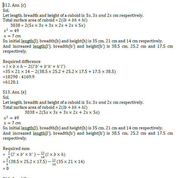 Q13. घनाभ के नए आयतन के 2/3 और घनाभ के प्रारंभिक आयतन के 11/10 के मध्य अंतर कितना है?