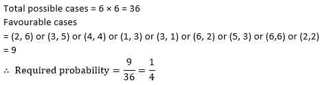 दो निष्पक्ष पासों को फैंका जाता हैं। प्राप्त करने की प्रायिकता ज्ञात कीजिए।
