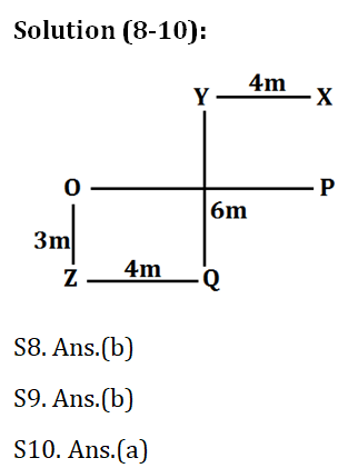 एक व्यक्ति बिंदु X से पश्चिम दिशा में चलना शुरू करता है और 4 मीटर चलता है और बिंदु Y पर पहुंचता है। बिंदु Y से वह बाएं मुड़ता है और बिंदु Q पर पहुंचने के लिए 6 मीटर चलता है। फिर वह दायें मुड़ता है और बिंदु Z पर पहुंचने के लिए 4 मीटर चलता है , यहाँ से वह अपने दायें मुड़कर 3 मीटर चलता है और बिंदु O पर पहुँच जाता है। बिंदु O से, वह 8 मी पूर्व की ओर चलता है और बिंदु P पर रुक जाता है।