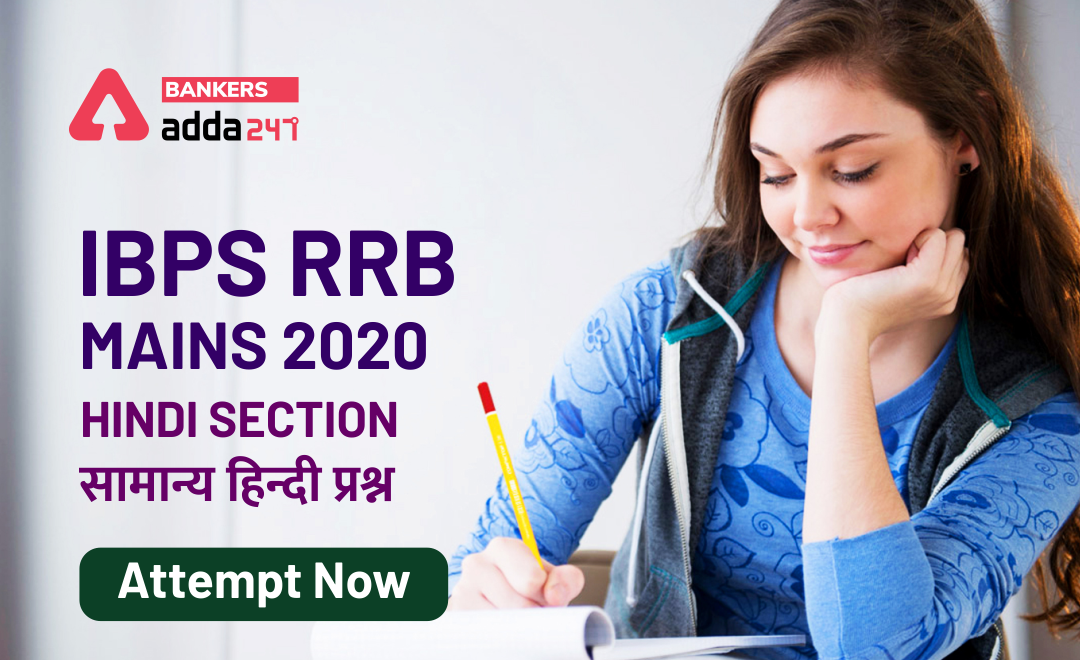 जैसा कि आप सभी जानते हैं कि IBPS ने IBPS RRB prelims 2020 का आयोजन सफलता पूर्वक कर लिया है. अब मेंस परीक्षा के प्रिपरेशन का समय है, आप IBPS RRB prelims cut off 2020 या IBPS RRB prelims result 2020 का इंतज़ार नहीं कर सकते हैं. क्योंकि, परीक्षा की तारीख कभी भी आ सकती है. इसलिए, आपको हिंदी सेक्शन तैयारी भी उसी तरह करनी है जैसे आप अंग्रेजी सेक्शन की करते हैं। नीचे हम सामान्य हिंदी / हिंदी भाषा / हिन्दी व्याकरण से संबन्धित सामान्य ज्ञान के प्रश्न और उनके उत्तर दे रहे हैं, ये प्रश्न आपको प्रतियोगी परीक्षाओं में पूछे जाने वाले सामान्य हिंदी के प्रश्न के उत्तर देने में मदद करेंगे.