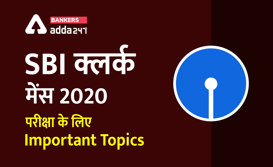 SBI Clerk Mains 2020– State Bank Of India ने क्लर्क/ जूनियर एसोसिएट्स 2020 के लिए प्रीलिम्स परीक्षा का सफलतापूर्वक आयोजन किया. अब एक फाइनल स्टेज यानी Main Exam होगा. और यह परीक्षा 19 अप्रैल, 2020 को होगी. SBI की ओर से, जो वैकेन्सी की संख्या जारी की गयी है, वह 8000+ है और आप सभी जानते ही हैं कि इसके 10 गुना aspirants इस परीक्षा को देंगे. इसलिए, Competetion को देखते हुए हम कह सकते हैं कि आपको अपनी preparation को SBI Clerk Mains के लिए speed up करना होगा. और हम यहाँ इस Article में important topics पर चर्चा करेंगे, जिन्हें आपको SBI Clerk Mains examination में maximum marks स्कोर करने के लिए ज़रूर पढ़ना चाहिए :