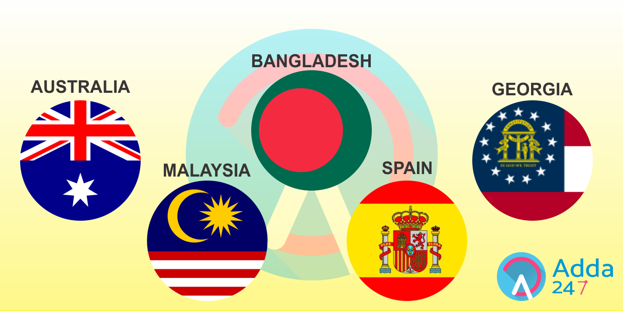 आमतौर पर आपके लिए परीक्षा में आने वाले प्रश्न विभिन्न कारणों से वर्तमान में चर्चा में रहे देशो से होंगे.तो इसके विषय में तथ्यों को अपडेट और संशोधित करना महत्वपूर्ण है. ऑस्ट्रेलिया, बांग्लादेश, जॉर्जिया, मलेशिया और स्पेन के विषय में अपने सामान्य ज्ञान को बेहतर करने के लिए और पढ़ें