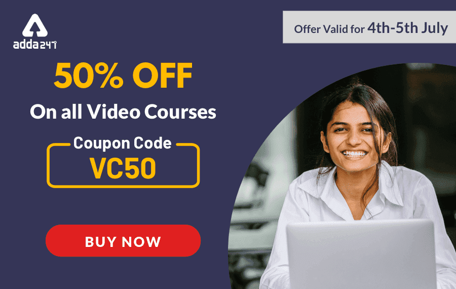 आगामी महीनों में बहुत सी परीक्षाएं आयोजित की जानी हैं जिन्हें लेकर सभी उम्मीदवार चिंतित हैं. उम्मीदवारों को समय प्रबंधन की उनकी समस्या का हल खोजने और परीक्षा के लिए तैयार करने के लिए सर्वोत्तम अध्ययन सामग्री प्राप्त करने के लिए उत्सुक हैं. आपकी क्वेरी के लिए हमारे पास एक सही समाधान है- VIDEO COURSES. शिक्षण की यह विधि न केवल समय की बचत करती है, बल्कि यथासंभव सर्वोत्तम तरीके से इसका उपयोग करती है. Adda247 ने आगामी परीक्षाओं को ध्यान में रखते हुए इस विडियो कोर्स को बनाया है. आप सभी विडियो कोर्स पर कोड VC50 का प्रयोग करके 50% की छूट प्राप्त कर सकते हैं.