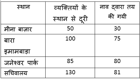 Q5. यदि व्यक्ति को रविवार को छोड़कर सभी स्थानों पर यात्रा करनी है, तो नाव द्वारा उसे कितनी अधिकतम दूरी तय करनी चाहिए।