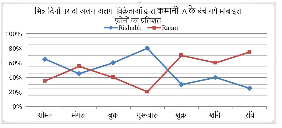 Q7. पूरे सप्ताह में राजन द्वारा बेचे गये मोबाइल फ़ोनों का औसत प्रतिशत, ऋषभ द्वारा बेचे गये मोबाइल फ़ोनों के औसत प्रतिशत से लगभग कितने प्रतिशत अधिक या कम है?