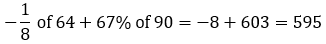 Q4. 64 का –12.5% + 900 का 67% = ?