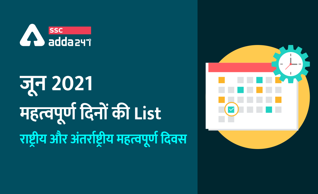 Adda247 आपको हमेशा परीक्षा से पहले आपके करेंट अफेयर को मजबूत करने के लिए GA पावर कैप्सूल प्रदान करता है. यहां, हम आपको जून 2021 महीने के महत्वपूर्ण दिन प्रदान कर रहे हैं.