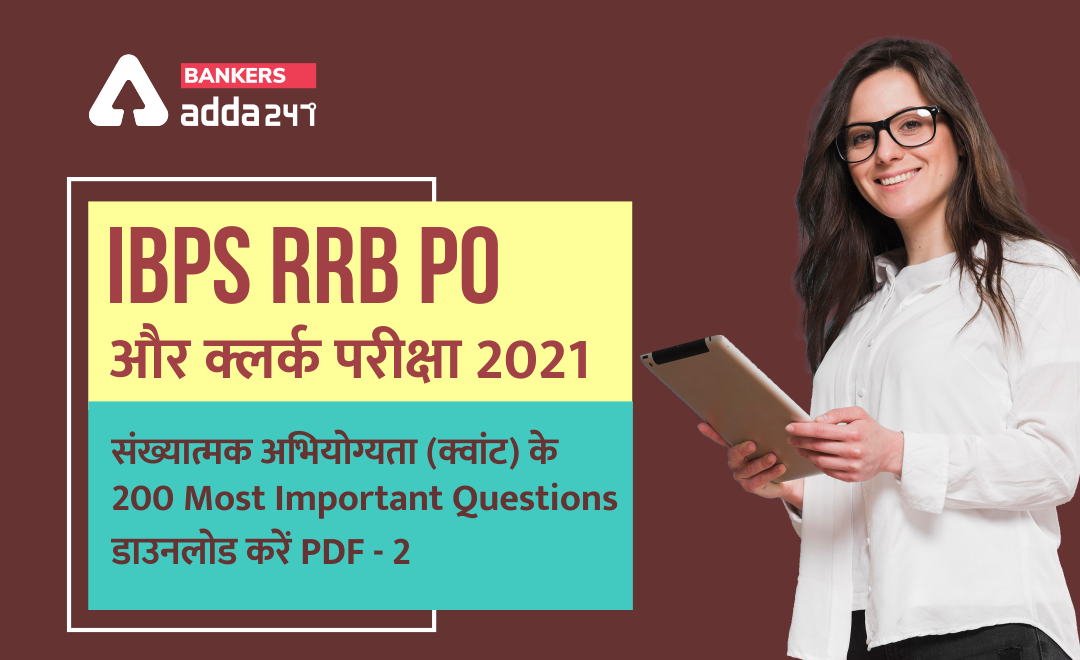 Most Expected Quantitative Aptitude Questions for IBPS RRB PO Prelims 2021 | Download PDF of 200 Important Questions PDF for IBPS RRB PO & Clerk Quant | | IBPS RRB PO और क्लर्क परीक्षा 2021 के लिए 200 Most Important Questions.