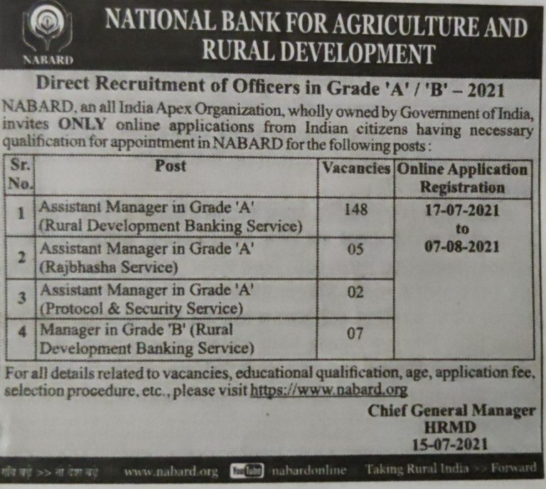 NABARD Recruitment 2021: Grade A/B Notification Out For 162 Posts, Apply Online, Eligibility, Exam Date Hindi | NABARD Recruitment 2021: Grade A/B Notification Out For 162 Posts, Apply Online, Eligibility, Exam Date