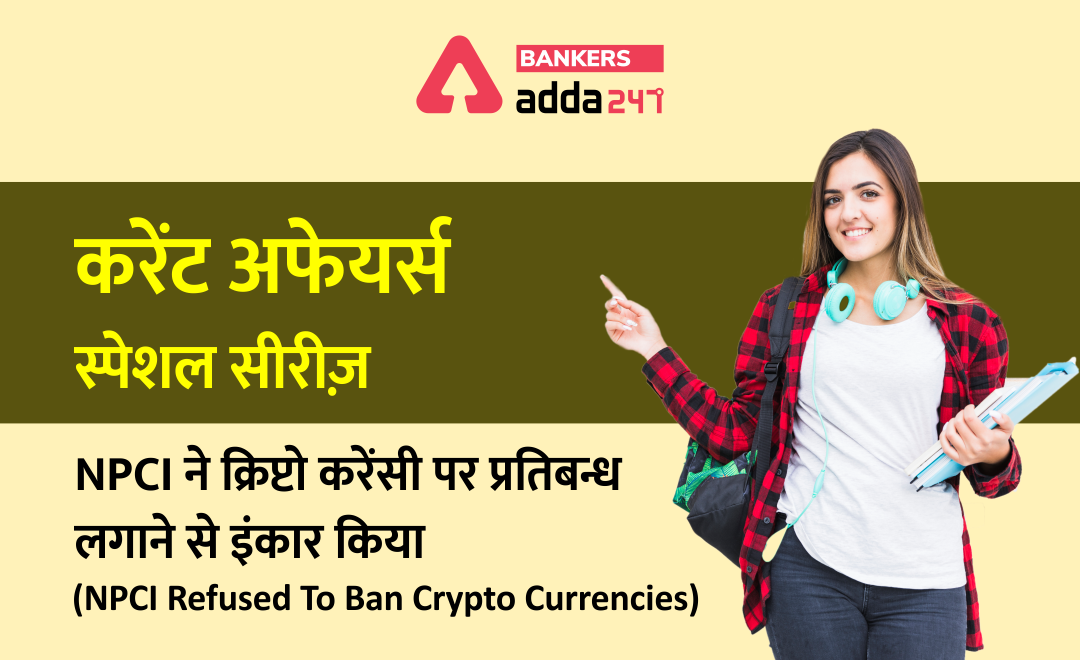इसी कड़ी में आज का हमारा करेंट अफेयर्स टॉपिक है- NPCI ने क्रिप्टो करेंसी पर प्रतिबन्ध लगाने से इंकार किया (NPCI Refused To Ban Crypto Currencies)– करेंट अफेयर्स स्पेशल सीरीज. यदि आप किसी Government Bank Job में जाना चाहते है तो ये बहुत ही जरुरी हो जाता है कि आपको करेंट अफेयर्स की अच्छी Knowledge हो.
