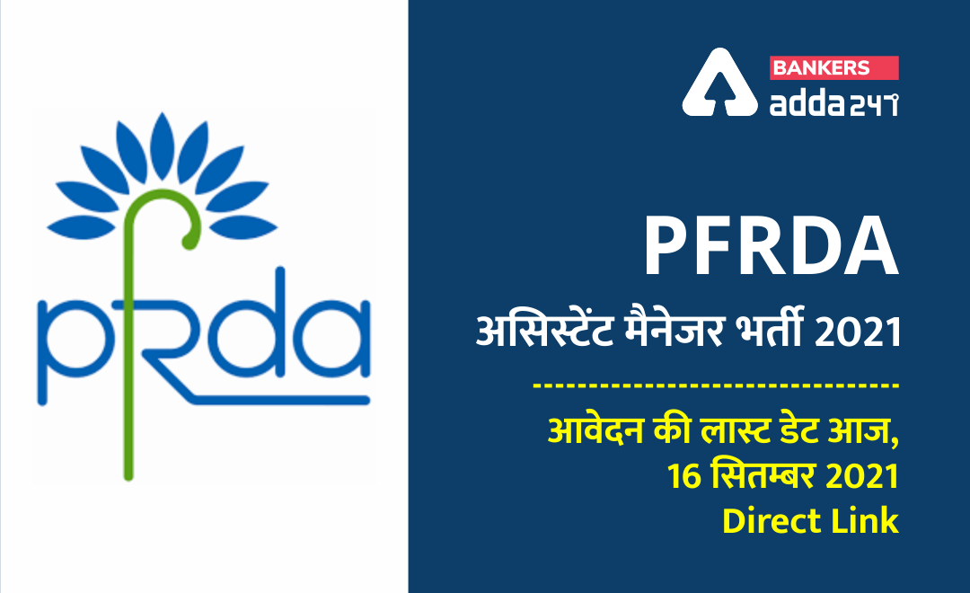 PFRDA Assistant Manager Recruitment 2021: यदि आपने अभी तक पेंशन निधि विनियामक और विकास प्राधिकरण (Pension Fund Regulatory and Development Authority) में PFRDA असिस्टेंट मैनेजर (Assistant Manager) ग्रेड A की भर्ती के लिए आवेदन नहीं किया है, तो जल्दी कीजिये! आपके पास केवल आज का ही दिन बाकी है. PFRDA असिस्टेंट मैनेजर (Assistant Manager) ग्रेड A भर्ती के लिए ऑनलाइन आवेदन करने की अंतिम तिथि 16 सितंबर 2021 है. आपको बता दें कि PFRDA ने 13 अगस्त 2021 को PFRDA की आधिकारिक वेबसाइट पर PFRDA असिस्टेंट मैनेजर (Assistant Manager) ग्रेड A की भर्ती के लिए एक आधिकारिक अधिसूचना PDF जारी की है.