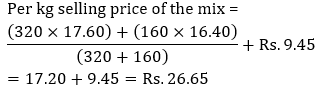 Q8. कुमार 320कि.ग्रा चावल प्रति कि.ग्रा 17.60 की दर से खरीदता है तथा इसे 16.40रु. प्रति कि.ग्रा के 160कि.ग्रा चावल में मिला देता है। वह इस मात्रा को बेचने से प्रति कि.ग्रा. 9.45 का लाभ अर्जित करना चाहता है तो चावल के इस मिश्रण को उसे प्रति कि.ग्रा. किस विक्रय मूल्य पर बेचना चाहिए?