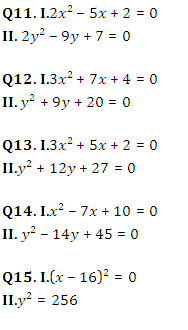 Directions (11-15): नीचे दिए गए प्रत्येक प्रश्न में दो समीकरण दिए गए हैं, आपको दोनों समीकरणों को हल करना ही और उत्तर देना है.