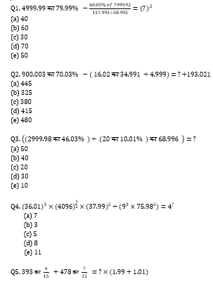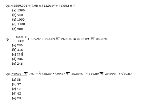 Directions (1-8): दिए गये प्रश्नों में (?) का अनुमानित मान क्या है?