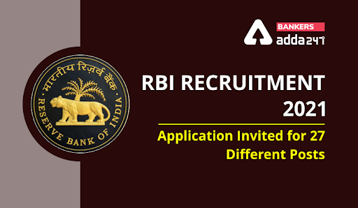 भारतीय रिजर्व बैंक (Reserve Bank of India) ने एक विज्ञापन के जरिए 27 विभिन्न पदों के लिए भर्ती जारी की है. वे सभी स्टूडेंट्स जो RBI में जॉब करना चाहते हैं, वे इन पदों की eligibility criteria को चेक करके आवेदन कर सकते हैं. इन पदों की रजिस्ट्रेशन और Fees/intimation charges भुगतान के लिए ऑनलाइन विंडो 23 फरवरी 2021 से 10 मार्च 2021 (6.00 बजे तक) तक खुली रहेगी.