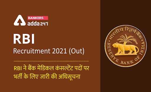 RBI recruitment 2021: भारतीय रिजर्व बैंक ने 19 जुलाई 2021 को अपनी आधिकारिक वेबसाइट यानी rbi.org पर पार्ट टाइम बैंक मेडिकल कंसल्टेंट (Engagement of Part Time Bank’s Medical Consultant – BMC) की भर्ती के लिए अधिसूचना जारी की है। इस भर्ती के लिए कुल 4 रिक्तियां (vacancies) जारी की गई हैं. यह भर्ती 3 साल के लिए कॉन्ट्रैक्ट के आधार की जाएगी। सभी इच्छुक उम्मीदवार इस भर्ती के लिए आवेदन कर सकते हैं, और उनके आवेदन क्षेत्रीय निदेशक, मानव संसाधन प्रबंधन विभाग, आरबीआई, मुख्य कार्यालय भवन, डॉ राघवेंद्र राव रोड, सिविल लाइंस, P.B.No.15, नागपुर-440001 को 03, अगस्त 2021 तक या उससे पहले पहुंच जाने चाहिए.