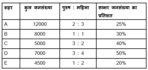 दी गई तालिका में, पांच अलग-अलग शहरों में कुल जनसंख्या,