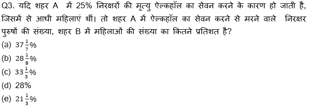 Q2. शहर D और E में मिलाकर पुरुषों की कुल संख्या, शहर B और C में मिलाकर महिलाओं की कुल संख्या से कितने प्रतिशत अधिक/कम है?