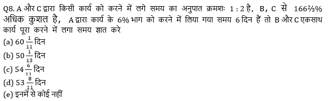 Q20. ‘A’ अकेले 16 दिनों में 2 / 3 कार्य कर सकता है जबकि अकेले ‘B’ 18 दिनों में 3 / 4 कार्य कर सकता है। समान कार्य को पूरा करने के लिए दोनों द्वारा लिया समय ज्ञात करे।