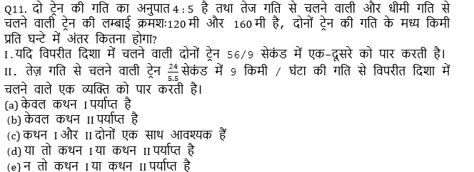 Directions (17-19): निम्नलिखित प्रत्येक प्रश्न 2 कथनों अर्थात कथन I और कथन II के साथ दिया गया है। आपको उन्हें पढ़ना होगा और ज्ञात करना होगा कि नीचे दिए गए निर्देश के अनुसार प्रश्न का उत्तर देने के लिए कौनसा कथन आवश्यक है।