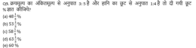 Q7. एक दुकानदार एक वस्तु का क्रय मूल्य 60% अधिक अंकित करता है और 20%, 12.5% और ‘d’ % की तीन क्रमागत छूट देता है और 7.52% का लाभ अर्जित करता है। यदि दुकानदार केवल पहली और तीसरी छूट देता है, तो दुकानदार द्वारा अर्जित लाभ प्रतिशत ज्ञात कीजिये।