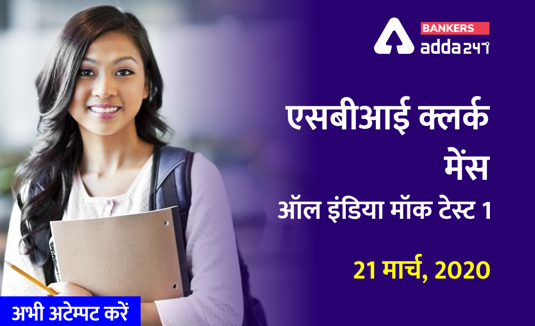 SBI Clerk Mains All India Mock Test : SBI क्लर्क मेंस 2020 परीक्षा 19 अप्रैल 2020 को आयोजित होने वाली है जिसके माध्यम से 8000 से भी अधिक स्टूडेंट्स को SBI में क्लर्क के रूप में भर्ती किया जायेगा. Preparation के लिए सबसे जरुरी है प्रैक्टिस करना. इससे आपको पता चलता है कि आपकी तैयारी का स्तर क्या हैं. तैयारी के विश्लेषण के साथ अपने कमजोर पक्ष को समझने में मदद मिलती हैं. SBI क्लर्क मेंस परीक्षा की तैयारी में आपकी मदद करने के लिए, हम SBI क्लर्क मेंस आल इंडिया मॉक टेस्ट उपलब्ध करा रहे हैं. जिससे आप परीक्षा से पहले वास्तविक परीक्षा का अनुभव प्राप्त कर सकते हैं. यह SBI क्लर्क मेंस आल इंडिया मॉक 21 मार्च 2020 यानी आज आयोजित किया जा रहा है. आपको अपना बेस्ट प्रदर्शन करने का प्रयास करना चाहिये.अपनी स्पीड, एक्यूरेसी और टाइम मैनेजमेंट में सुधार के लिए आल इंडिया मॉक का अभ्यास करें.