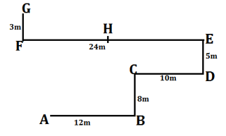 Q8.यदि एक व्यक्ति खंबा B से चलना आरंभ करता है और खंबा H पर रुकता है, तो उसके द्वारा तय की गई कुल दूरी कितनी है?